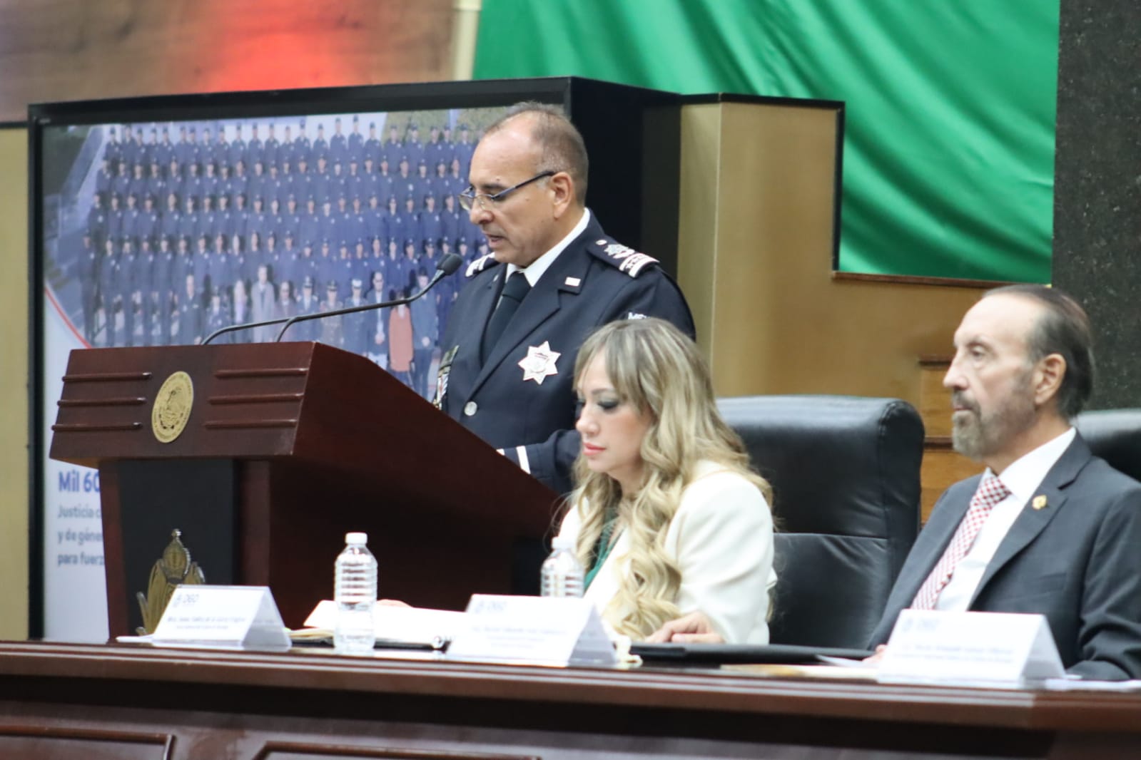 De la Garza Fragoso expuso también los resultados en justicia penal restaurativa, con mil 398 acuerdos reparatorios y la recuperación de más de 102 millones de pesos en favor de víctimas y ofendidos. Además, enfatizó la atención a mujeres y niñas con mil 344 carpetas judicializadas por violencia familiar, mil 855 órdenes de protección y la conclusión de la tercera etapa del Centro de Justicia para la Mujer en Gómez Palacio.